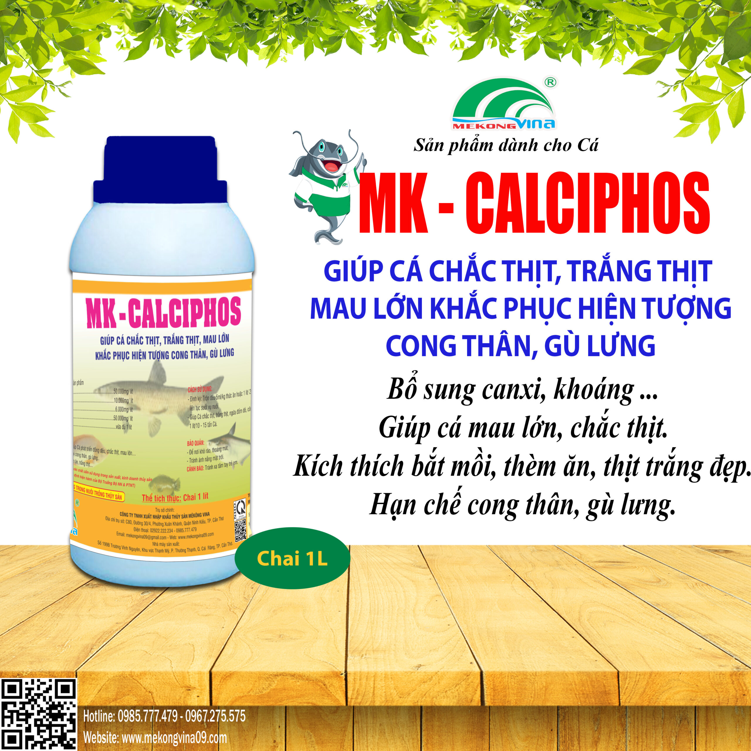 -Giúp Cá phát triển đồng đều, ngừa đốm đỏ, cong thân và gù lưng: 1 lít/10 – 15 tấn Cá.
